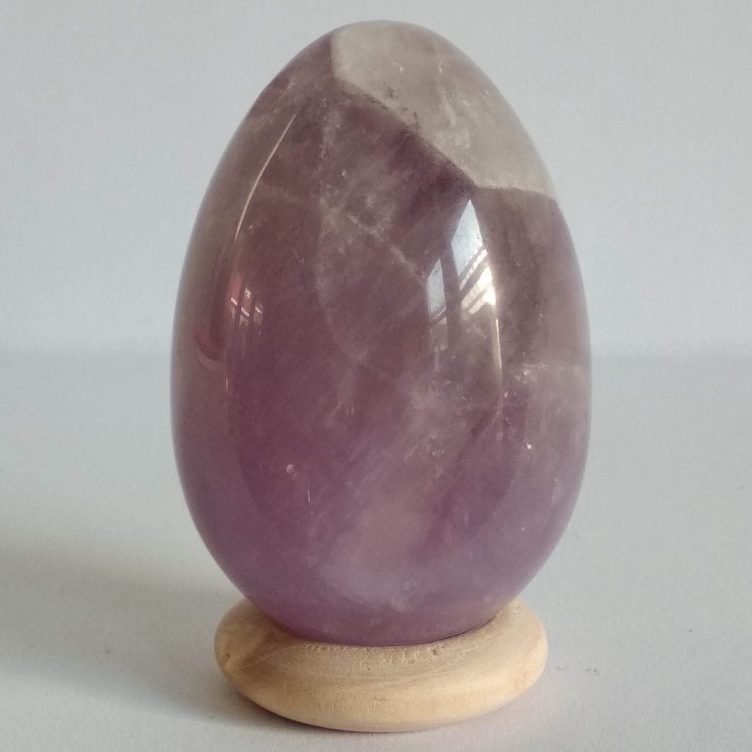 Amethist wordt gezien als een krachtige heler, die sterk werkt op je intuïtie, je hoogste geestelijke macht (7e chakra), ze geeft liefdevolle warmte bij meditatie. Er wordt geloofd dat zij helpt onze verborgen talenten tevoorschijn komen, door onze kruin en derde oog te openen, hierdoor zou zij waardevol zijn voor mensen die hun intuïtie en spirituele vaardigheden willen ontwikkelen. Aan de steen wordt een rustgevende en zuiverende werking toegekend. Zij zou bijdragen aan ontspanning van het zenuwstelsel, en wordt daarom veel gebruikt bij spanningsklachten zoals stress, hoofdpijn, migraine en slapeloosheid. Het kan fijn zijn om met deze steen te slapen (als knuffelsteen, of in je vagina). Men geloofd dat zij helpt het hoofd helder te maken en daardoor inzicht geeft in gedrag en keuzes. Inzicht helpt om slechte gewoontes te erkennen en achter je te laten. Vroeger werd amethist gebruikt tegen dronkenschap, waaraan zij haar naam ontleend (a-methyl = anti-alcohol). Voorts zou ze het hormoonstelsel en de spijsvertering op elkaar af stemmen, wat waardevol zou kunnen zijn bij voedings gerelateerde klachten (denk aan oestrogeen (soja)) die negatief effect hebben op de vrouwelijke hormonen. Kleur en uiterlijk van Amethist Een paarse kleur, hoe donkerder de steen, hoe sterker de werking die eraan toegekend wordt. Licht paarse amethist is enigzinds transparant van kleur. Amethist in de yoni is met name geschikt om te mediteren op de seksuele energie die vrijkomt als je met het ei werkt. Dit kan waardevol zijn om voor jezelf te onderzoeken wat jouw seksualiteit betekent en hoe je deze energie kunt transformeren naar hogere en helende staten van bewustzijn. Over de steensoort Amethist behoort tot de macrokristallijne kwarts-familie, en bevat mangaan, wat de paarse kleur geeft. Hoe meer van dit mineraal, hoe donkerder paars, en hoe sterker wordt beweerd dat de werking is. In zonlicht (zonnehitte) verbleekt deze kleuring tot geelachtig (citrien is tot geel verbleekte amethist). Energetische Reiniging van Amethist Amethist is een kwartssoort en heeft van nature een schone energie die weinig negatieve energieën absorbeert. Wil je toch reinigen dan zijn er de volgende mogelijkheden: een waterreiniging in stromend water. een energetische reiniging in de aarde buiten of binnen (bij een kamerplant) een luchtreiniging door wind buiten, of door bijvoorbeeld met een veer erlangs te waaieren, of een vuurreiniging met de rook van salie of palo santo. Energetisch opladen van Amethist Met zonlicht (mannelijk) of maanlicht (vrouwelijk), doch pas met zonlicht op. om verkleuring tegen te gaan kun je de steen in de zon kun afdekken met een dunne (katoenen) doek. Waarschuwing, pas op met direct zonlicht In zonlicht (zonnehitte), verbleekt de kleur tot geelachtig. Voorkom daarom blootstelling aan veel zon.