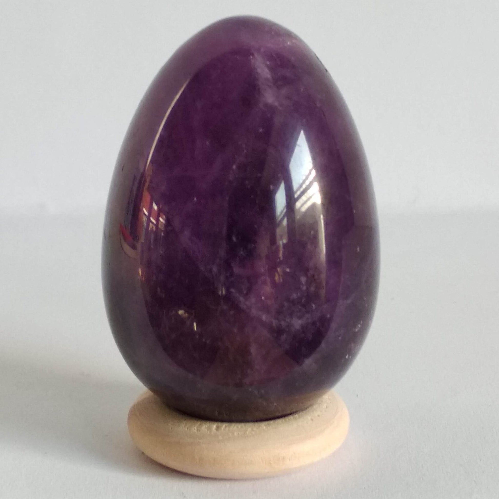 Amethist wordt gezien als een krachtige heler, die sterk werkt op je intuïtie, je hoogste geestelijke macht (7e chakra), ze geeft liefdevolle warmte bij meditatie. Er wordt geloofd dat zij helpt onze verborgen talenten tevoorschijn komen, door onze kruin en derde oog te openen, hierdoor zou zij waardevol zijn voor mensen die hun intuïtie en spirituele vaardigheden willen ontwikkelen. Aan de steen wordt een rustgevende en zuiverende werking toegekend. Zij zou bijdragen aan ontspanning van het zenuwstelsel, en wordt daarom veel gebruikt bij spanningsklachten zoals stress, hoofdpijn, migraine en slapeloosheid. Het kan fijn zijn om met deze steen te slapen (als knuffelsteen, of in je vagina). Men geloofd dat zij helpt het hoofd helder te maken en daardoor inzicht geeft in gedrag en keuzes. Inzicht helpt om slechte gewoontes te erkennen en achter je te laten. Vroeger werd amethist gebruikt tegen dronkenschap, waaraan zij haar naam ontleend (a-methyl = anti-alcohol). Voorts zou ze het hormoonstelsel en de spijsvertering op elkaar af stemmen, wat waardevol zou kunnen zijn bij voedings gerelateerde klachten (denk aan oestrogeen (soja)) die negatief effect hebben op de vrouwelijke hormonen. Kleur en uiterlijk van Donkere Amethist Donkere amethist is diep donker paars van kleur en transparant. Amethist in de yoni is met name geschikt om te mediteren op de seksuele energie die vrijkomt als je met het ei werkt. Dit kan waardevol zijn om voor jezelf te onderzoeken wat jouw seksualiteit betekent en hoe je deze energie kunt transformeren naar hogere en helende staten van bewustzijn. Over de steensoort Amethist behoort tot de macrokristallijne kwarts-familie, en bevat mangaan, wat de paarse kleur geeft. Hoe meer van dit mineraal, hoe donkerder paars, en hoe sterker wordt beweerd dat de werking is. In zonlicht (zonnehitte) verbleekt deze kleuring tot geelachtig (citrien is tot geel verbleekte amethist). Energetische Reiniging van Amethist Amethist is een kwartssoort en heeft van nature een schone energie die weinig negatieve energieën absorbeert. Wil je toch reinigen dan zijn er de volgende mogelijkheden: een waterreiniging in stromend water. een energetische reiniging in de aarde buiten of binnen (bij een kamerplant) een luchtreiniging door wind buiten, of door bijvoorbeeld met een veer erlangs te waaieren, of een vuurreiniging met de rook van salie of palo santo. Energetisch opladen van Amethist Met zonlicht (mannelijk) of maanlicht (vrouwelijk), doch pas met zonlicht op. om verkleuring tegen te gaan kun je de steen in de zon kun afdekken met een dunne (katoenen) doek. Waarschuwing, pas op met direct zonlicht In zonlicht (zonnehitte), verbleekt de kleur tot geelachtig. Voorkom daarom blootstelling aan veel zon.