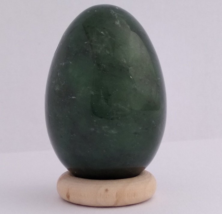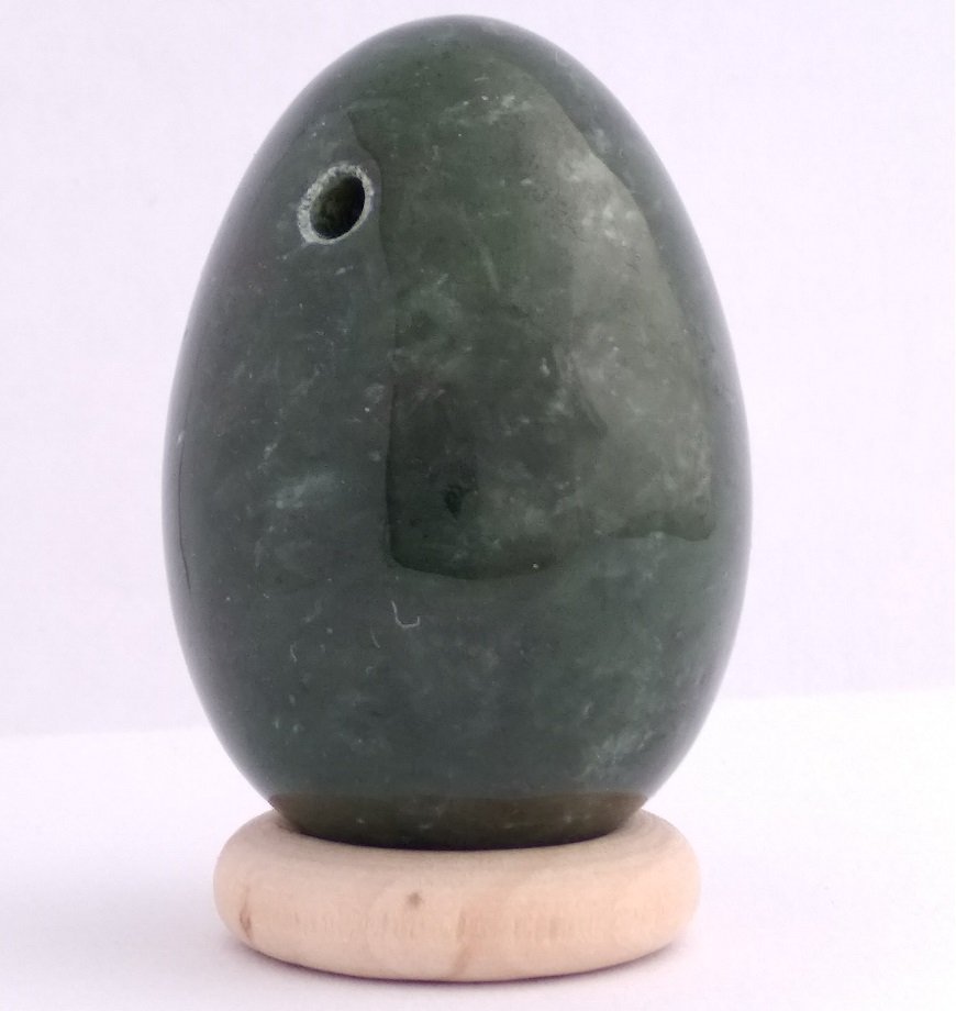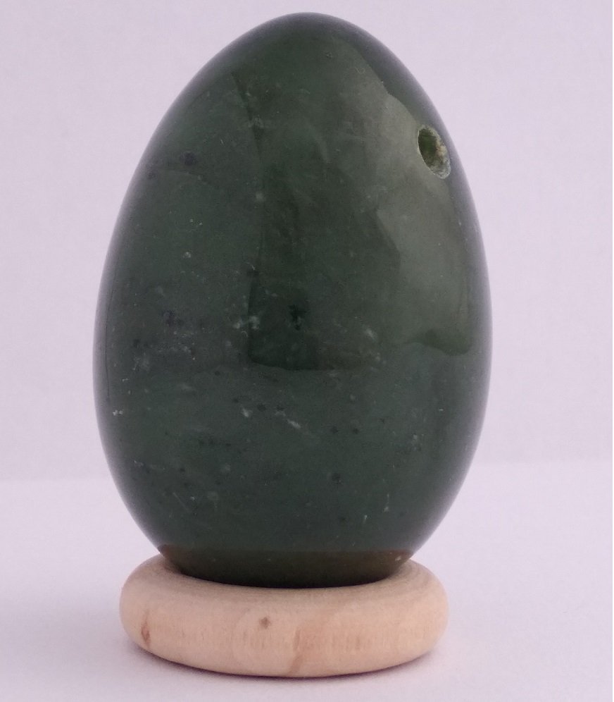 De naam Nefriet komt van het Griekse 'nephros' (eng. Nephrite), dat 'nieren' betekent, niet verrassend dus dat aan de steen een positieve werking voor de nieren wordt toegeschreven. In de Chinese cultuur wordt nefriet jade ook wel 'de steen van de hemel' genoemd. Nefriet Jade is de steen die traditioneel in het Taoïsme gebruikt werd als yoni ei, het is dan ook de meest gebruikte en geadviseerde steensoort voor dit doeleinde. Er wordt beweerd dat de steensoort de fysiologische aspecten van de yoni en daarmee het lichaam in balans brengt. Jade wordt gezien als een zuiverende steen, niet alleen zou ze emotionele rust in de geest en in het hart brengen, maar ze zou ook fysiek op het zenuwstelsel en de nieren werken, zodat gifstoffen afgevoerd kunnen worden en fysieke spanningen losgelaten kunnen worden. De steen zou filterend voor het lichaam werken. Zouten en mineralen zouden in het lichaam door de steen in balans gebracht worden. Verder wordt geloofd dat de steen vruchtbaarheid bevordert en werkt op de bijnieren, de milt en celvorming herstelt. Groene jade zou een verzachtende werking op het hart hebben en hartstocht kanaliseren. Zo zou ze slecht functionerende relaties harmoniseren. De verzachtende werking op de geest zou negatieve gevoelens verjagen, en zo helpen overzicht te krijgen en irritatie en onnodige gevoelens los te kunnen laten. Meer balans in psychische aspecten stabiliseert de geest en ondersteunt zelfstandigheid. De algemene werking van deze steen wordt gezien als dat zij lichaam en geest met elkaar in harmonie brengt, en aspecten hierin integreert. Kleur en uiterlijk van Canadese Nefriet jade Jademine B kwaliteit Ondanks dat deze stenen kleine witte vezeltjes hebben of lichte oneffenheden in het oppervlak, is het een erg mooie kwaliteit nefriet. De stenen zijn prachtige levendige wereldjes, met verschillende patronen accenten, tinten groen en accenten. De stenen kunnen erg kwa uiterlijk van elkaar verschillen. Nefriet jade in de yoni, is de steen die standaard wordt geadviseerd voor beginners met het yoni ei. Dit is omdat aan deze steen toegeschreven wordt dat zij de yoni en lichaam in balans brengt, op een zachte en reinigende manier. Ze zou subtiel werken op het zenuwstelsel, zodat onnodige emotionele en fysieke spanningen in het gebied van de yoni los gelaten kunnen worden. Dit heeft een erg positief effect op de heupen. De nieren, die in het Taoïsme direct aan onze seksualiteit verbonden worden, zouden door deze steen geactiveerd worden. Over de steensoort Nefriet is één van de twee echte jade soorten (nefriet en jadeïet). Nefriet ontstaat door een vervilting, tijdens het samenpersen van actinoliet. De moleculaire structuur van het materiaal maakt het zeer hard en taai, en is daardoor geschikt voor het vervaardigen van werktuigen en sieraden. De naam is afgeleid van het Griekse woord nephros, wat nier betekent. In veel culturen, waaronder ook in het Taoïsme, wordt aan de steen een werking toegekend die samenhangt met de functie van de nieren. Energetische Reiniging van Nefriet jade Van jade wordt geloofd dat zij veel negativiteit absorbeert, doordat zij helpt los te laten wat je niet nodig hebt. Het is daarom belangrijk om de steen regelmatig intensief energetisch te reinigen. Onder stromend water met zeezout is hiervoor een krachtige gemakkelijke methode. Heb je het gevoel dat de steen vol met negatieve energie zit, begraaf hem dan in de aarde, het liefst tijdens (iedere) nieuwe maan. Energetisch opladen van Nefriet jade Probeer met volle maan de steen buiten te zetten in het maanlicht, kijk of je op dit moment ook kunt reflecteren hoe jouw proces verloopt. Verder kun je de steen opladen op een bedje van bergkristal, of in de buurt van bergkristal stenen. LET OP bij zwangerschap Er wordt gezegd dat Jade de bevalling stimuleert, en dat zij weeën opwekt, daarom wordt het sterk afgeraden om dit ei tijdens de zwangerschap te gebruiken. Wil je tijdens de zwangerschap met een yoni ei werken; Kijk dan hier: Lees hier meer over welke eitjes je kunt gebruiken tijdens de zwangerschap