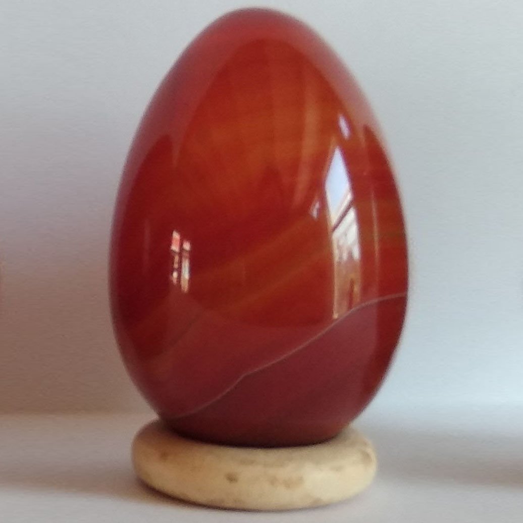 Carneool is een echte vrouwensteen en wordt gerelateerd aan de baarmoeder. Zij zou een positief effect hebben op de doorbloeding, wat essentieel is voor de baarmoeder en andere vrouwelijke seksuele organen. De steen staat symbool voor de vrouwelijke voorouderlijn en staat de cyclus van leven en dood. De steen wordt in verband gebracht met het heiligbeenchakra, en zou helpen bij klachten in het bekkengebied. Het stimuleren van de doorbloeding helpt ook tegen tegen koude handen en voeten. Ook wordt beweerd dat de steen een ondersteunende functie heeft voor de opname van vitamines en mineralen. Daarnaast wordt haar toegeschreven bloed te stelpen en een desinfecterende werking te hebben en dat deze steen helpt bij vele andere bloed-gerelateerde kwalen zoals bloedarmoede, spataderen, aambeien, huidklachten en de luchtwegen. Daarnaast zou Carneool een positieve werking hebben bijzenuwpijn en in de enezing van Botten. Kleur en uiterlijk van Carneool Rood, bruin, donkerrood, donker oranje Carneool in de yoni, zou verlichting geven bij zware menstruaties, en herstel na de bevalling. Er word gezegd dat deze steensoort de doorbloeding verbetert, vooral in het bekkengebied. Ze staat er om bekend dat zij zowel zou ondersteunen aan het begin van een zwangerschap, als bij het herstel na de bevalling. Het element dat bij agaat (en dus ook carneool) hoort is water. Hetzelfde element past bij de energie van de yoni. Agaat is daarmee als yoni ei een super fijne steen om mee te werken. Haar energie wordt ervaren al vriendelijk, vrouwelijk, helend en verkoelend. Over Carneool Carneool is een vari?teit van agaat, en agaat is weer een versie van Chalcedoon. Dit betreft halfedelstenen en zijn vari?teiten van mineraal kwarts. Agaat bestaat uit een vermeningnv van kwarts- en mogoniet-kristallen. (Beide zijn SIO2, maar met een andere kristalstructuur). De rode kleur ontstaat door onzuiverheden van ijzer in het mineraal. Energetische Reiniging van carneool carneool is een steen die samenhangt met het element water, reinig de steen daarom het liefst in stromend water, dit kan onder de kraan of in een rivier. eventueel kun je hier zout aan toevoegen. wil je het effect versterken gebruik dan hematiet (zorg wel dat de hematiet zelf goed gereinigd is). Opladen van Carneool Leg de Carneool edurende de dag in de volle zon, maar dek de stenen wel af met een doek. Het directe zonlicht kan de stenen verbleken. Waarschuwing Carneool is een zeldzame en rode varieteit van agaat. Agaat laat zich gemakkelijk verven, daardoor is het belangrijk van carneool zeker te weten dat de kleur natuurlijk is. Ik laat mijn edelsteenkundige dit bepalen.