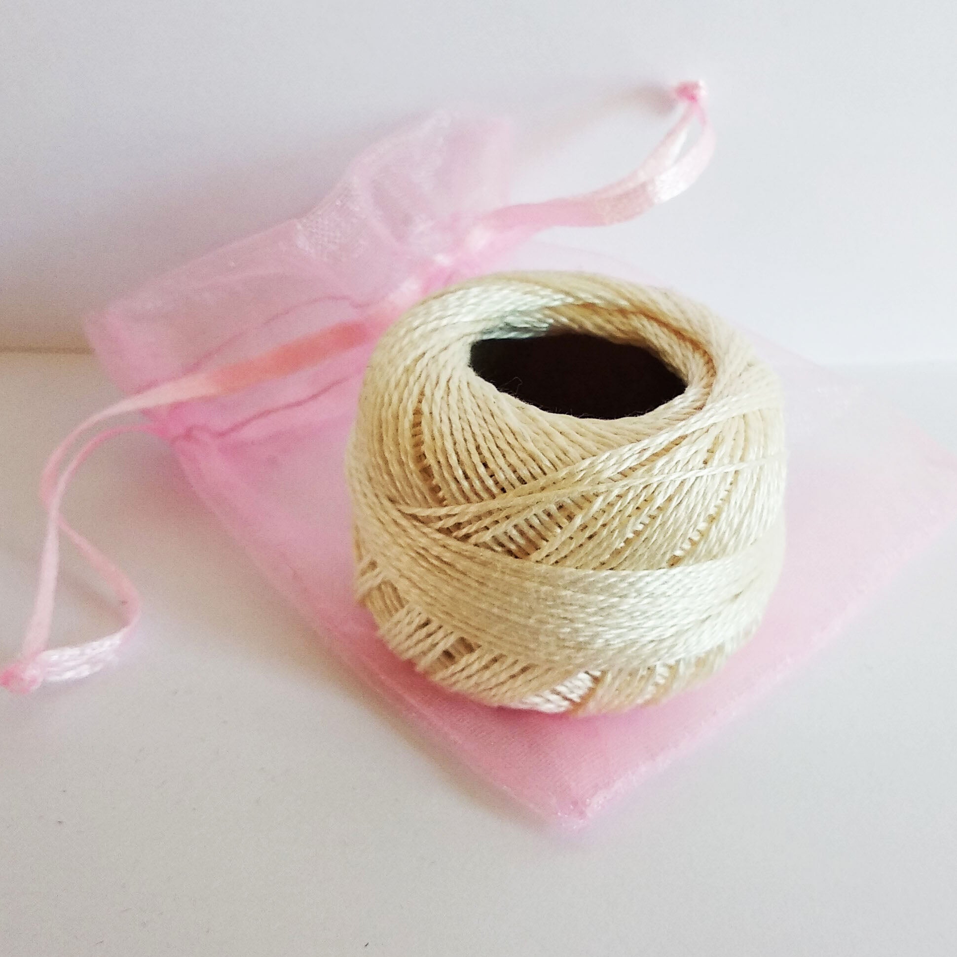 Dun, zacht en stevig katoenen draad, van een fijne dikte.
