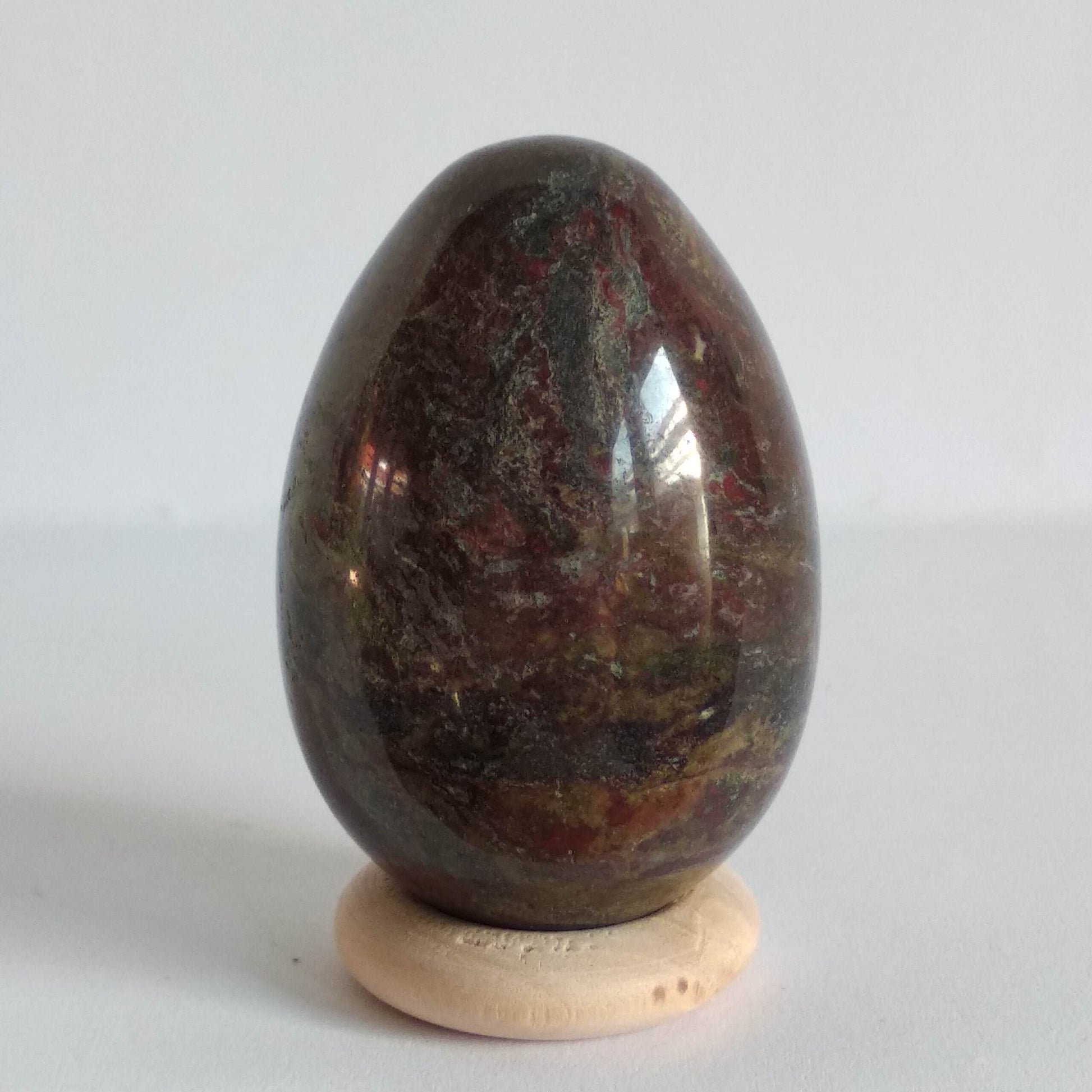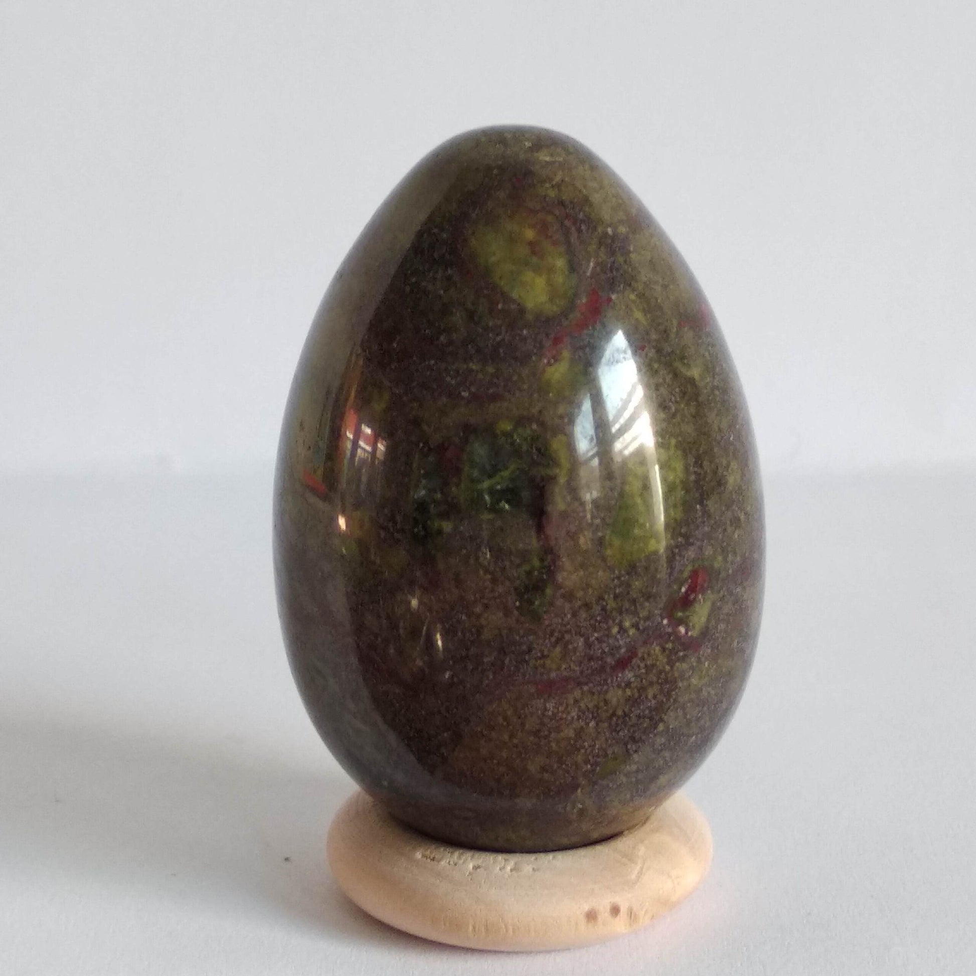 Jaspis wordt in de eerste plaats gewaardeerd om de aardende en beschermende werking die zij zou hebben. Zij zou een positieve werking hebben op de bloedsomloop, doorbloeding, spijsvertering, darmen en de geslachtsorganen. Jaspis zou ondersteunen lichaam, ziel en geest in balans te brengen. Drakenbloed Jaspis is een jaspisvariant die bestaat uit rode en groene jaspis. Naast de sterke activerende werking die aan rode jaspis wordt toegeschreven, wordt aan groene jaspis een kalmerende en emotioneel stabiliserende werking toegeschreven. Kleur en uiterlijk van Drakenbloed Jaspis Aaneenschakeling van stukken (donker)rood (Piemonitiet) en groene jaspis. In de Yoni kan Jaspis tijdens de zwangerschap (maximaal 1 uur) gebruikt worden. Daarnaast wordt deze steensoort geadviseerd voor vrouwen tijdens en na de overgang. Ze zou een positieve werking hebben bij vaginale droogte. Energetische Reiniging van Jaspis Jaspis is een echte aardse steen, daarom is het super fijn de steen te reinigen door hem in de aarde te begraven, door de kwaliteit van de steen neigt dit zelfs naar tevens opladen van de steen. Verder kun je de steen reinigen onder stromend water, met eventueel toegevoegd zout of met de rook van palo santo. energetisch opladen van Jaspis
