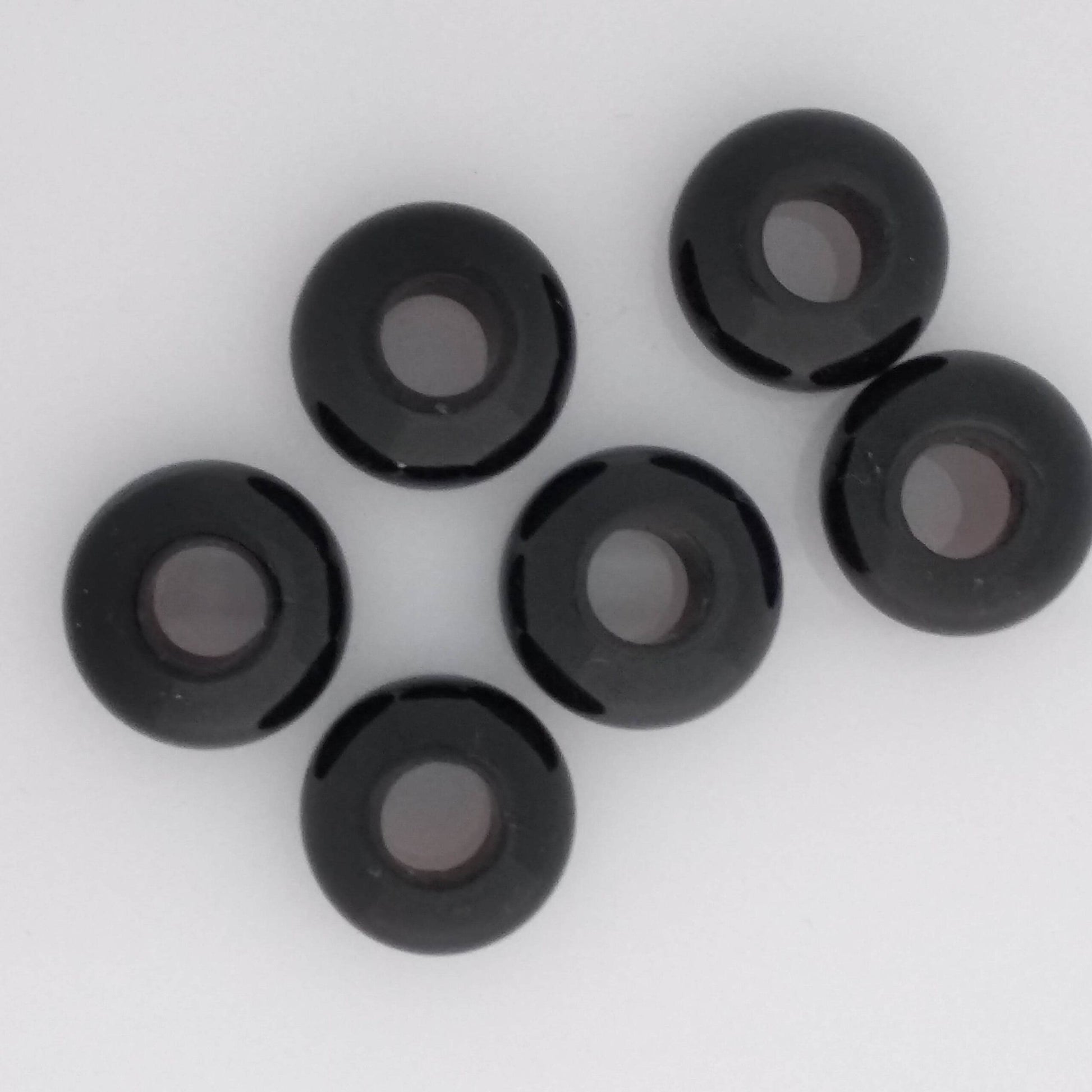 Zwart met een transparantie die naar doorzichtig neigt. De steen heeft soms witte lijnen, of lagen zoals je die in agaat kunt zien.