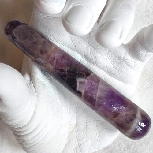 Dit is een relatief kleine massagestick. Ik vind deze sticks erg prettig voor acupressuur, bijvoorbeeld in de buik of uitwendig rondom de vagina. Inwendig is deze stick door de geringe afmetingen en toegankelijke vorm prettig voor het oefenen van dilatatie bij vaginisme, of voor het werken met de energie en aanwezigheid van een bepaalde steensoort.