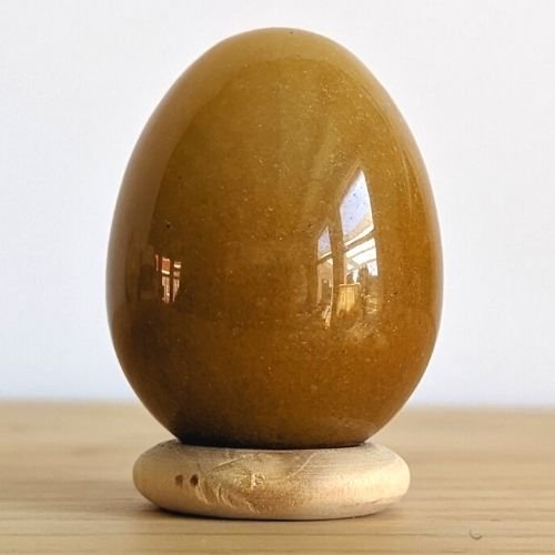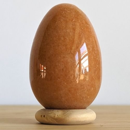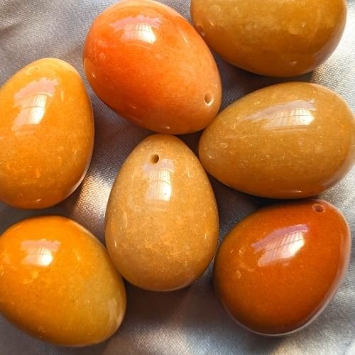 Van aventurijn wordt beweerd dat zij het intellectuele en het emotionele lichaam verbindt. Haar energie zou emotionele veiligheid en vertrouwen bieden, en is daarom heel geschikt om de seksuele organen, het hart en het hoofd met elkaar in balans te brengen. Daarnaast zou de steen mannelijke en vrouwelijke energieën met elkaar in evenwicht brengen. Mensen geloven dat aventurijn helpt om levenslust (ofwel levensenergie/seksuele energie) te ervaren, en dat zij motiverend werkt om je dromen waar te maken. Daarnaast zou zij leiderschap en besluitvaardigheid bevorderen. Ze zou zorgen voor zowel controle als harmonie. Lichamelijk zou aventurijn een positieve werking hebben op het hart en de bloeddruk. Oranje/ Rode aventurijn ?zou een positief effect hebben op je persoonlijke kracht en doorzettingsvermogen. De steen zou helpen besluiten te nemen assertief en daadkrachtig te reageren op situaties. Zo zou deze steen het mogelijk maken om je te helpen jouw levensdoelen gestalte te geven. Kleur en uiterlijk van perzik Aventurijn Variërend tussen geel, oranje en zalmkleurig, met kleine glimmende kristalletjes, die ietwat glinsterend kunnen ogen. De steen is niet transparant. Aventurijn in de yoni Als yoni ei kun je voor aventurijn kiezen als je wilt leren om te ontspannen in jouw seksuele energie, en haar zowel te activeren als te transformeren naar helende energie. Daarnaast kun je voor deze steensoort kiezen als je jouw mannelijke en vrouwelijke aspecten met elkaar in balans wilt brengen. Over de steensoort Aventurijn behoort tot de kwartsen en komt in meerdere kleuren voor. Zij kan variëren van groen, blauw, rood, bruin tot perzikkleurig. De steen is glasachtig en lijkt te glinsteren door metaal insluitsels. Energetische Reiniging van Aventurijn Aventurijn is een kwartssoort en heeft van nature een schone energie die weinig negatieve energieën absorbeert. Wil je toch reinigen dan zijn er de volgende mogelijkheden: een waterreiniging in stromend water. een energetische reiniging in de aarde buiten of binnen (bij een kamerplant) een luchtreiniging door wind buiten, of door bijvoorbeeld met een veer erlangs te waaieren, of een vuurreiniging met de rook van salie of palo santo. Opladen van Aventurijn Met zonlicht (mannelijk), maanlicht (vrouwelijk), of met bergkristal.