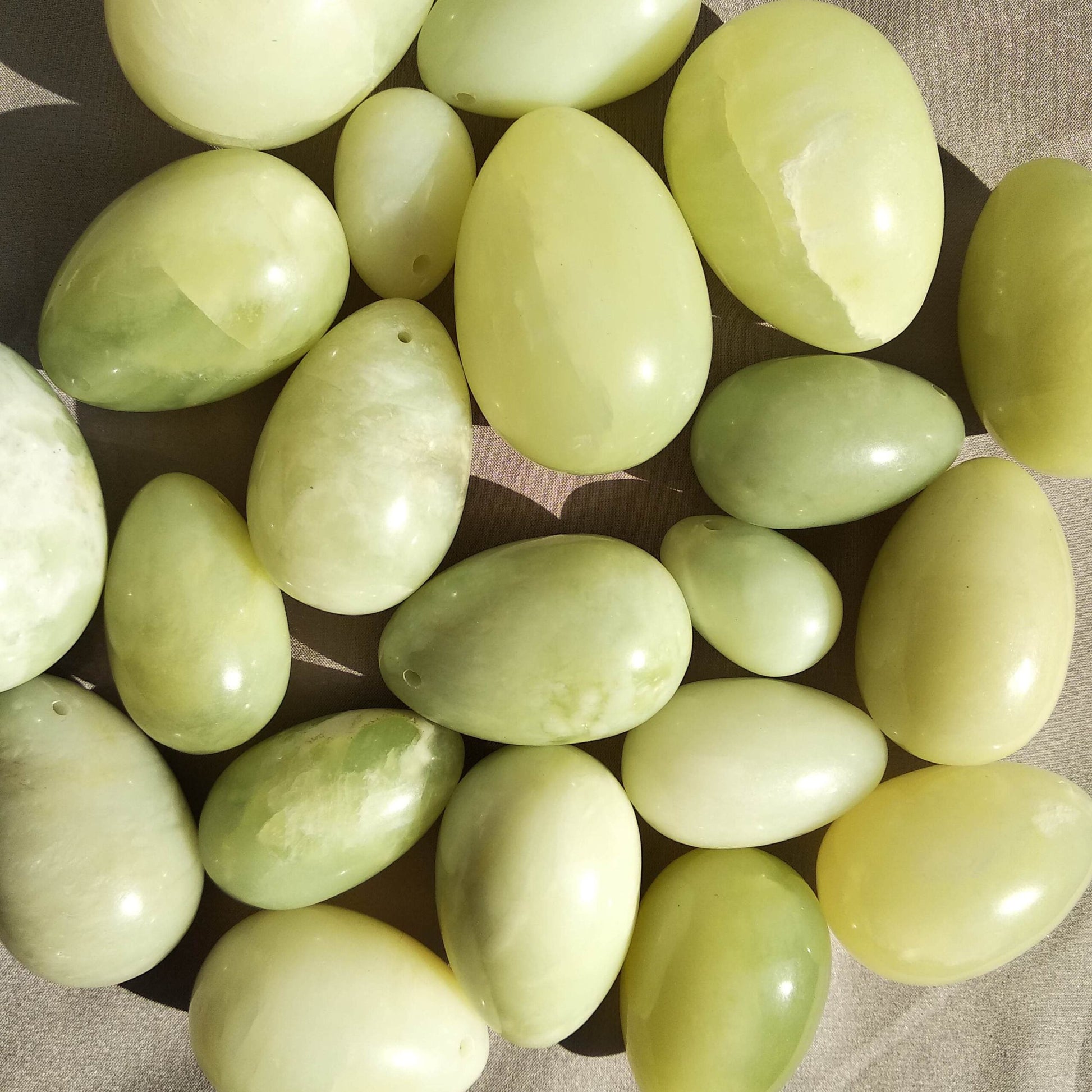 Van Serpentijn wordt gezegd dat zij aardend werkt en net als jade, het spirituele, fysieke, emotionele en het mentale met elkaar te verbindt en in balans brengt. De steen zou zorgen voor reiniging op een energetisch niveau in alle chakra's. Serpentijn is niet voor niets naar de slang (serpent) vernoemt, de vorming van de steenkristallen gebeurd op een slangachtige manier, en daardoor kun je in de steen soms slangachtige patronen zien. Aan de steen wordt toegeschreven dat zij het lichaam opent om de kundalini energie te kunnen laten stromen. Er wordt geloofd dat dit bereikt wordt doordat zij sterk op het zenuwstelsel werkt, en dus de ruggengraat (basis van Kundalini). Daarnaast zou de steen helpen het lichaam te ontgiften en te reinigen, zowel het bloed als het zenuwstelsel. Daarnaast zou serpentijn parasieten verdrijven en helpen bij de opname van calcium en magnesium De aardende werking die aan serpentijn wordt toegeschreven zou helpen om negatieve energie buiten te houden, en zou helpen te kalmeren bij spanningen, stress en innerlijke onrust. Kleur en uiterlijk van Serpentijn xiuyan jade Lichtgroen, tot bijna wit. Het patroon is ietwat wolkachtig, hoewel exemplaren erg in uiterlijk kunnen verschillen, sommige stenen zijn bijna transparant. De steen voelt zeepachtig aan, en is vaak iets minder glad geslepen dan bijvoorbeeld kwartssoorten. Dit komt doordat de variatie in hardheid het moeilijk maakt deze steensoort goed te slijpen en polijsten. Serpentijn in de yoni ?is ideaal voor bewuste seksuele beoefening, omdat zij de kundalini energie zou openen. De kundalini energie helpt om seksuele energie te transformeren in helende vitale energie voor het lichaam. Hiermee kun je oefenen, om niet meer tot een piek-orgasme te komen, maar tot het helender en meer full-body valley-orgasme, waarbij deze vitale energie niet gecentreerd blijft bij de seksuele organen, maar zich door het hele lichaam spreidt. Je probeert hiervoor niet tot een orgasme te komen, maar ontspant in plaats daarvan in de opwinding, als deze groot is. Ook zou deze steen door haar aardende werking helpen seksuele problemen te verminderen die samenhangen met gespannenheid, de kwaliteit die wordt toegeschreven dat zij lichaam emotie en geest in balans brengt speelt hierin een belangrijke rol. De steen zou ontkrampend werken, en ondersteund daarom bij menstruatiepijn en -krampen. Over de steensoort Serpentijn wordt vaak gewonnen in dezelfde aders (en dus mijnen) waar ook nefriet jade gewonnen wordt. De chemische samenstelling is erg vergelijkbaar, echter is serpentijn minder dicht van structuur. Omdat een aantal Chinese jade-mijnen uitgeput zijn geraakt, is er steeds meer serpentijn op de markt gekomen die onterecht verkocht wordt als jade. Sommige soorten serpentijn worden ook wel 'nieuw jade' genoemd. Echte jade heeft vaak kleine zwarte vlekjes, terwijl serpentijn wolkachtige witte delen/lijnen kan hebben. Zwart komt weinig voor in serpentijn.
